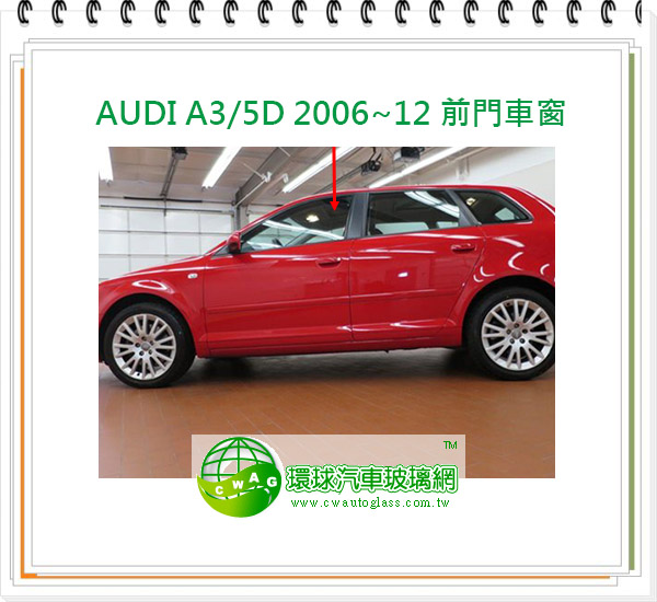 AUDI A3/5D 2006~12 左前門車窗
