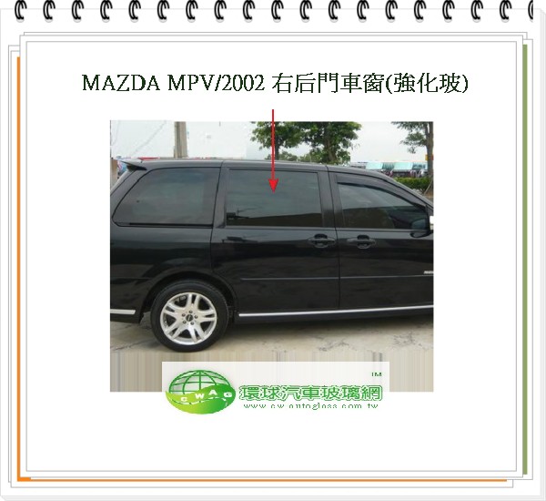 MPV/2002 右後車窗玻璃/灰