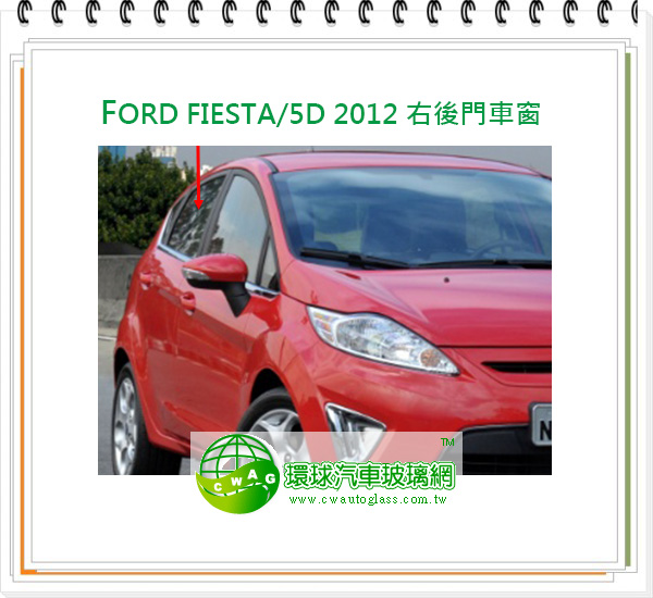 FORD FIESTA/5D 2012 右後門車窗