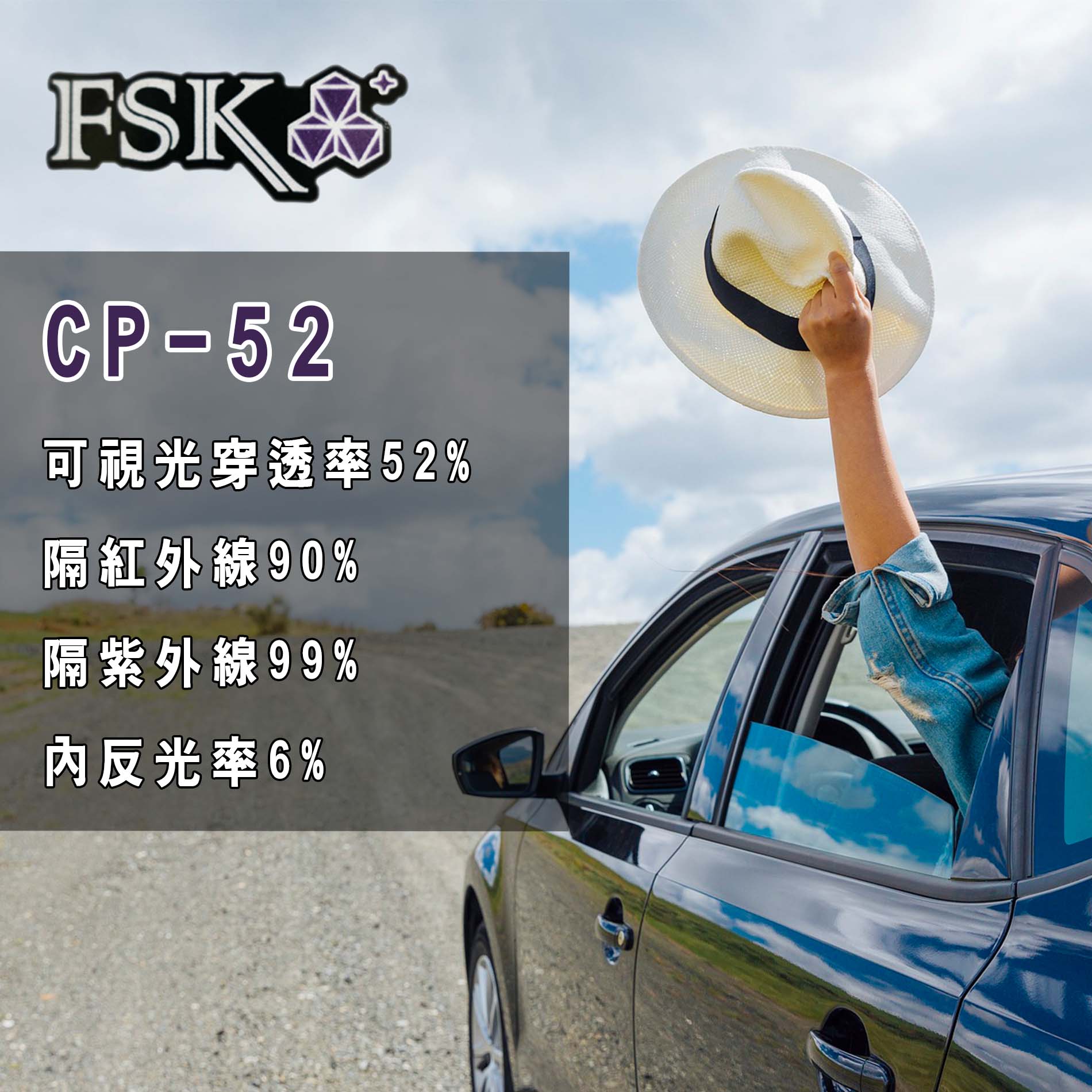 FSKFSK晶鑽系列CP-52 貼左後三角窗玻璃隔熱紙